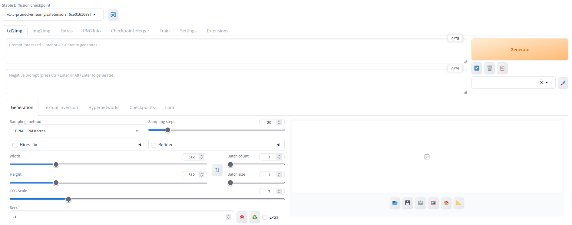 Running on local URL: http://127.0.0.1:7860,開啟瀏覽器並輸入網址http://127.0.0.1:7860,你該會見到Stable Diffusion的介面